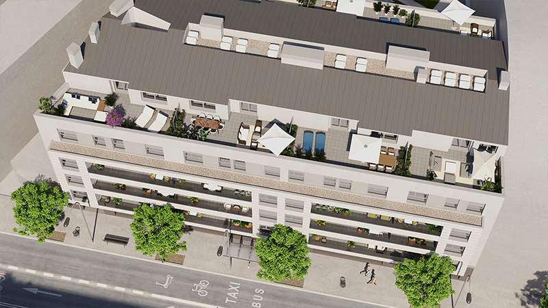 EDIFICI JACQUARD és una promoció d’habitatges projectada pensant en la teva comoditat, amb una estètica d'avantguarda, integrada a l'entorn i amb espais pensats per què gaudeixis plenament de la teva llar.